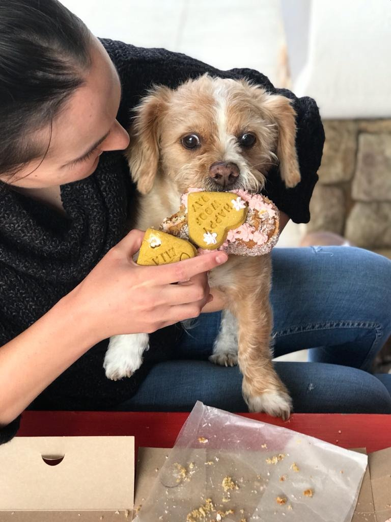 Our icing is dog friendly made with tapioca starch and organic plain unsweetened yoghurt peanut butter (Bambi's Butter). Coloured with all natural food colour derived from fruit and veg.
