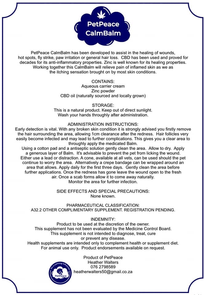 CalmBalm has proved phemonenal results on both canine and human clients. Packed with zinc and incredible quality cannibis oil, this Balm can be used on a daily basis.