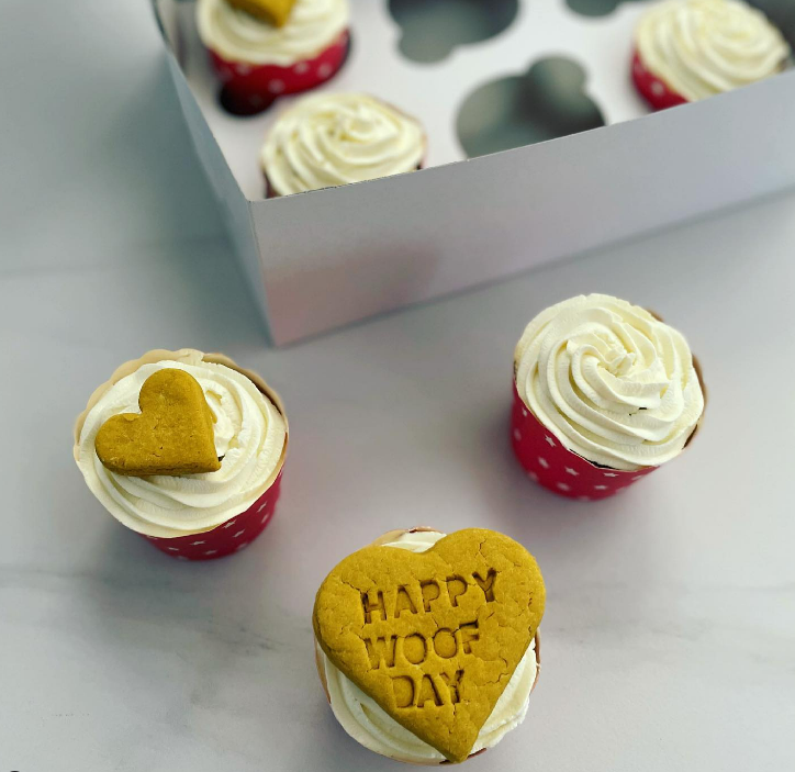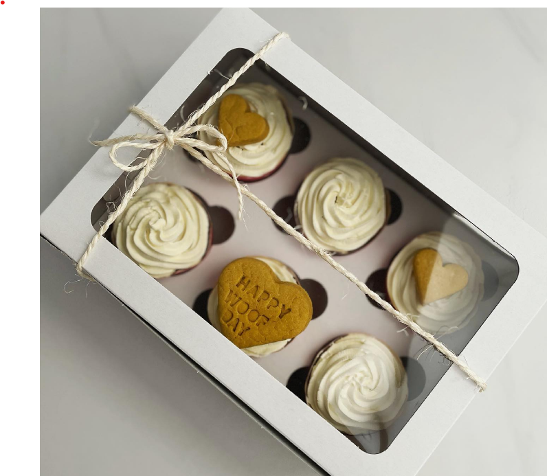 Per batch of 6 pupcakes, 2 pupcakes will be topped with Mimi & Munch heart treats and one pupcake will have the celebratory saying or your pups name (Happy Woofday/Gotcha Day etc). 🧁