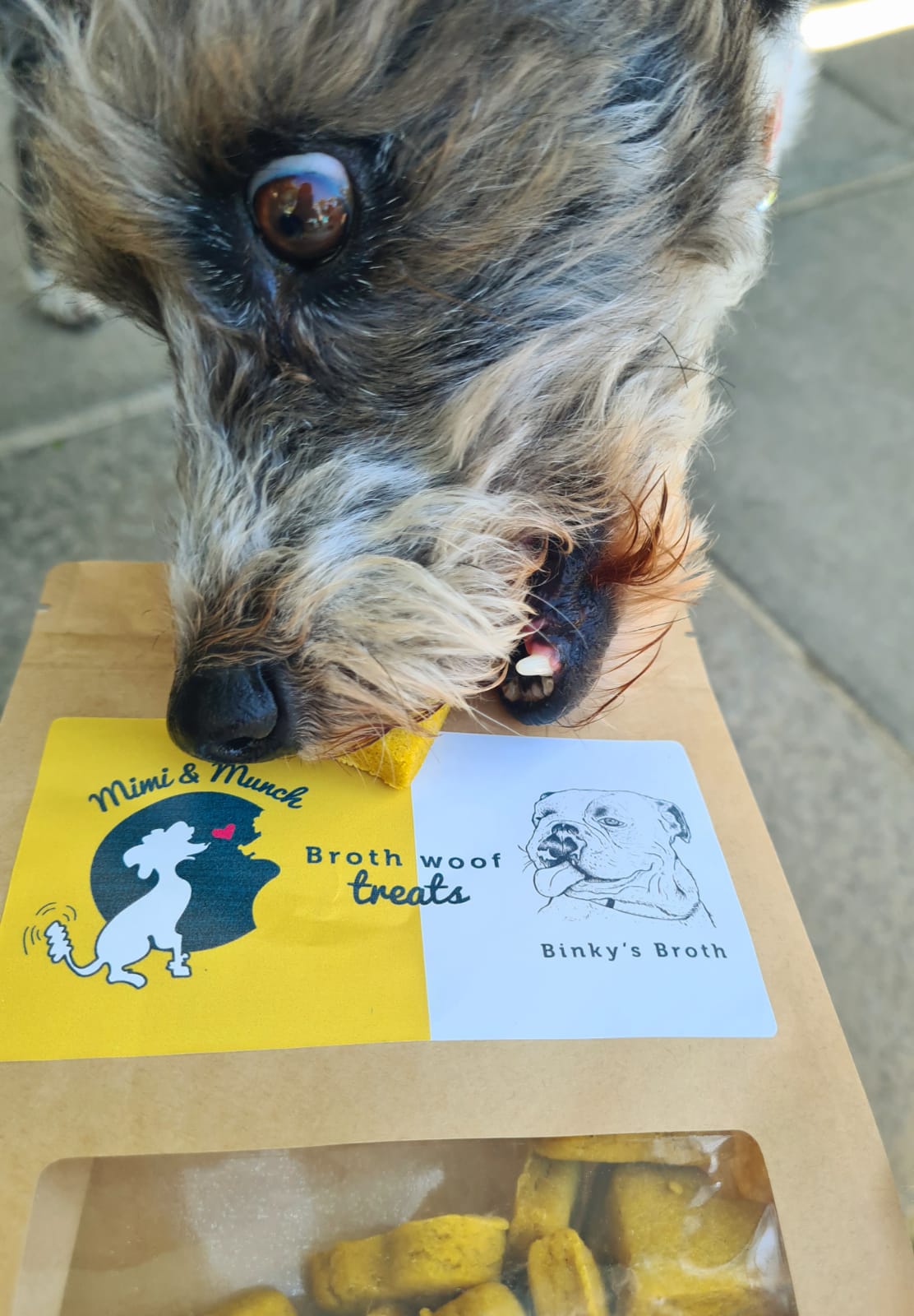 Introducing our brand new Broth Woof Treats in collaboration with the incredible Binky Broth! Each treat is packed with yummy vegetables and the Binky Bone Broth has so many health benefits which are combined for all-in-one goodness!